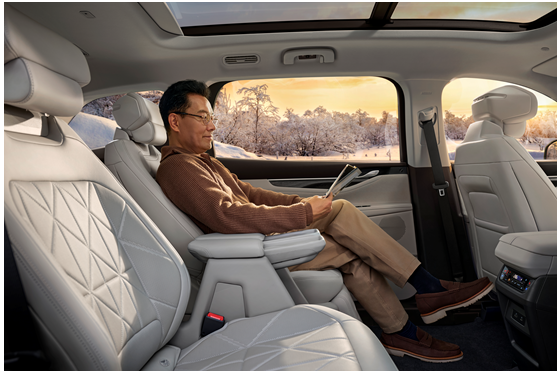 內(nèi)部空間上,福特銳界L是同級唯一具備2-2-3和2-3-2座椅布局可選的大7座SUV。2-2-3布局下,二排座椅可使用電動調(diào)節(jié),更有三種座椅一鍵調(diào)節(jié)模式,其中“一鍵舒躺模式”可自動調(diào)節(jié)至“座椅向后41度、腿托向上50度”的近零重力模式,帶來媲美頭等艙的乘坐體驗。二排座椅還有同級少有的加熱、通風功能,很好地照顧到了老人、孩子的出行體驗。2排通道寬至200mm,比一些MPV還寬,成年人可以輕松走進第三排。